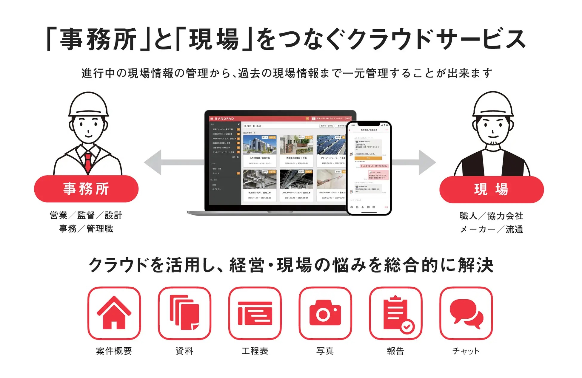営業として、お客様とはチャットを使ってやりとりをしています。使いやすくてスムーズです。業者さんとのやりとりでは、遠方の現場の際は大工さんたちが写真をしっかり入れてくれるので、進捗が分かりやすくて助かっています。(スタッフ・大木)