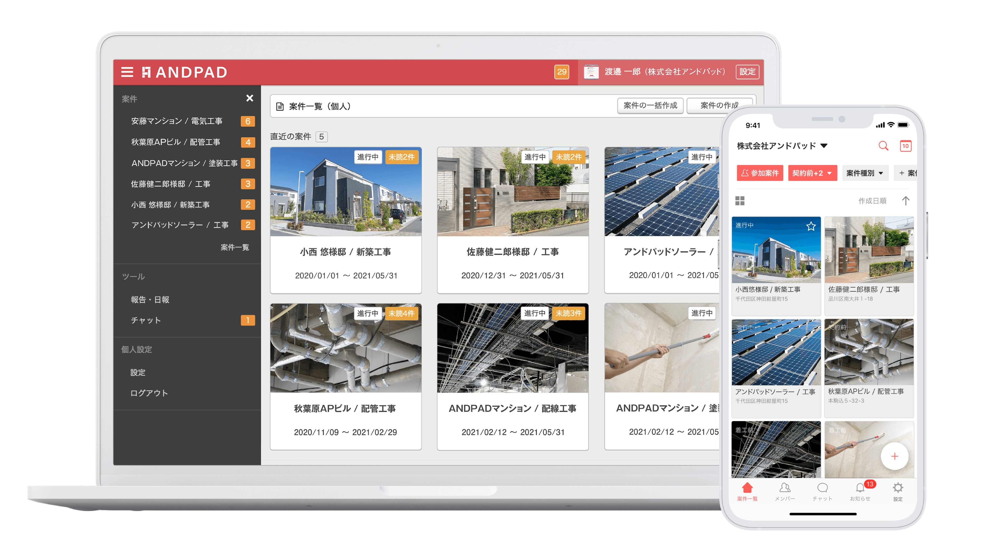 DXとは「デジタルトランスフォーメーション」の略です。経済産業省では「企業は、既存のビジネスから脱却して、新しいデジタル技術を活用することによって、新たな価値を生み出していくことが求められている。」と規定しています。吉川住建ではDXのソフトである「アンドパット(https://andpad.co.jp/)」の活用によって、お客様の問い合わせから、ご契約や工事を経てお引き渡し、そして入金といった全てを一元管理できるようになっています。