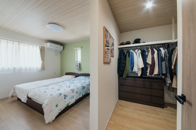 間取りが決まったら、メジャーを持ち歩いてください!見学先では、部屋の大きさをイメージして洗面、脱衣など、欲しい広さを大小問わず確かめるように寸法しました。そのおかげで、ファミリークローゼットでは服をかけても壁にぶつからない位置にバーを取り付けることができました。そして、間取りで分けることなく。家づくりの全ての決め事に関わってください。家への愛着が深まると思います!