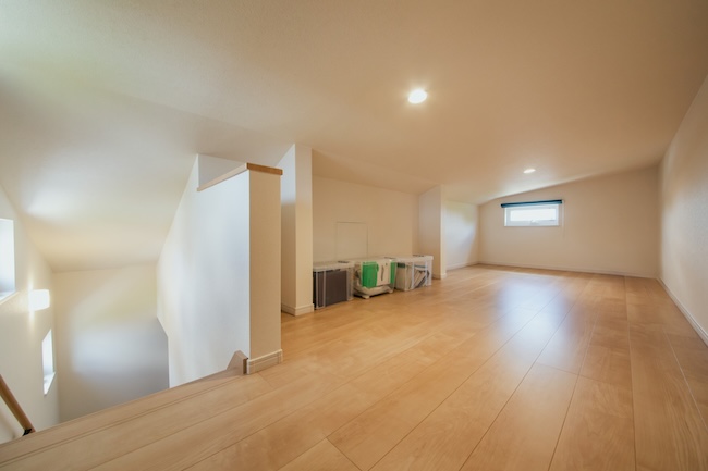 太陽光発電を搭載する大屋根が掛かった平屋のお住まいを計画されたオーナー様へご提案した小屋裏収納。「平屋なのに階段で小屋裏に登るの?費用もかかりそうだし、収納はそんなに無くても大丈夫だと思う」とのお考えのところ「完成後では確保しづらいのが収納。先に作っておくといいです!」とご提案しました。今では、すっかり活用されており「作ってよかった!」との感想をいただいています。平屋は、敷地と建物のバランスで収納を削って居室を大きくする計画になりがちな点を考慮したご提案でした。(担当/営業・舩橋)
